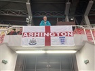 BRIAN ROBSON WITH HIS ENGLAND/ASHINGTON FLAG